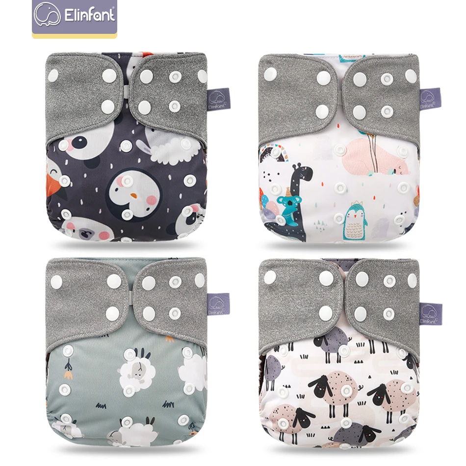Mejor Cambio de pañal de Elinfant Official Store por Mordedor venta al por mayor 4 unids/set bebé lavable pañales de tela café cubierta de pañal ajustable & reutilizable pañales de bolsillo envío gratis